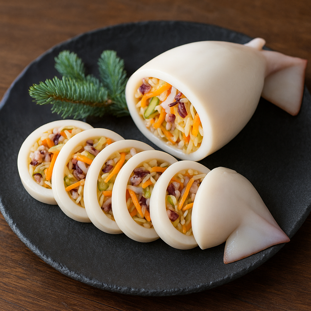 In the Shimokita region, a rustic local dish features squid bodies stuffed with finely cut cabbage and tentacles, then lightly marinated in sweet vinegar. It offers a satisfying crunch and a clean, refreshing finish.